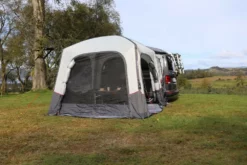 Mit dem Vango Agora Air VW Busvorzelt aus dem federleichten Sentinel-Sport Material wird Dein Campingurlaub sehr erholsam. Das freistehende Vango AirBeam® Busvorzelt ist schnell auf- und abgebaut und eignet sich ideal fĂĽr Busse mit einer Anschlusshöhe von 180 – 195 cm. Das Agora Air VW hat drei EingangstĂĽren, die alle problemlos aufgerollt werden können. So hast Du das GefĂĽhl mit Deiner Familie auf einer Veranda zu sitzen. Du kannst das Vorzelt aber auch als zusätzlichen Stauraum fĂĽr Fahrräder oder als Gästeschlafbereich verwenden. Die groĂźen Fenster des Vorzeltes sorgen somit fĂĽr ausreichend Helligkeit im Wohnbereich und einen hervorragenden Blick auf Deine Umgebung. Wenn Du hingegen mehr Privatsphäre genieĂźen möchtest, können die Fenster mit den Vorhängen komplett geschlossen werden. AuĂźerdem haben die Fenster einen Mesh-Einsatz, der die Luftzirkulation erhöht und Du kannst die TĂĽren auch geöffnet lassen, ohne dass Insekten ins Zelt gelangen. Mittels der zwei separaten Eingänge in der Verbindungsschleuse, gelangst du bequem zur Vorder- oder RĂĽckseite Deines Busses. Durch das Drive-Away Kit, löst Du den Tunnelbereich des Vorzeltes vom Fahrzeug ab, sodass dieses freisteht und Du mit dem Bus die Gegend erkunden kannst. Damit Dein Vorzelt ein wenig wohnlicher wird, verfĂĽgt das Zelt ĂĽber SkyHooks. Dieses ermöglichen Dir flexible Aufhängepunkte beispielsweise fĂĽr Lampen.