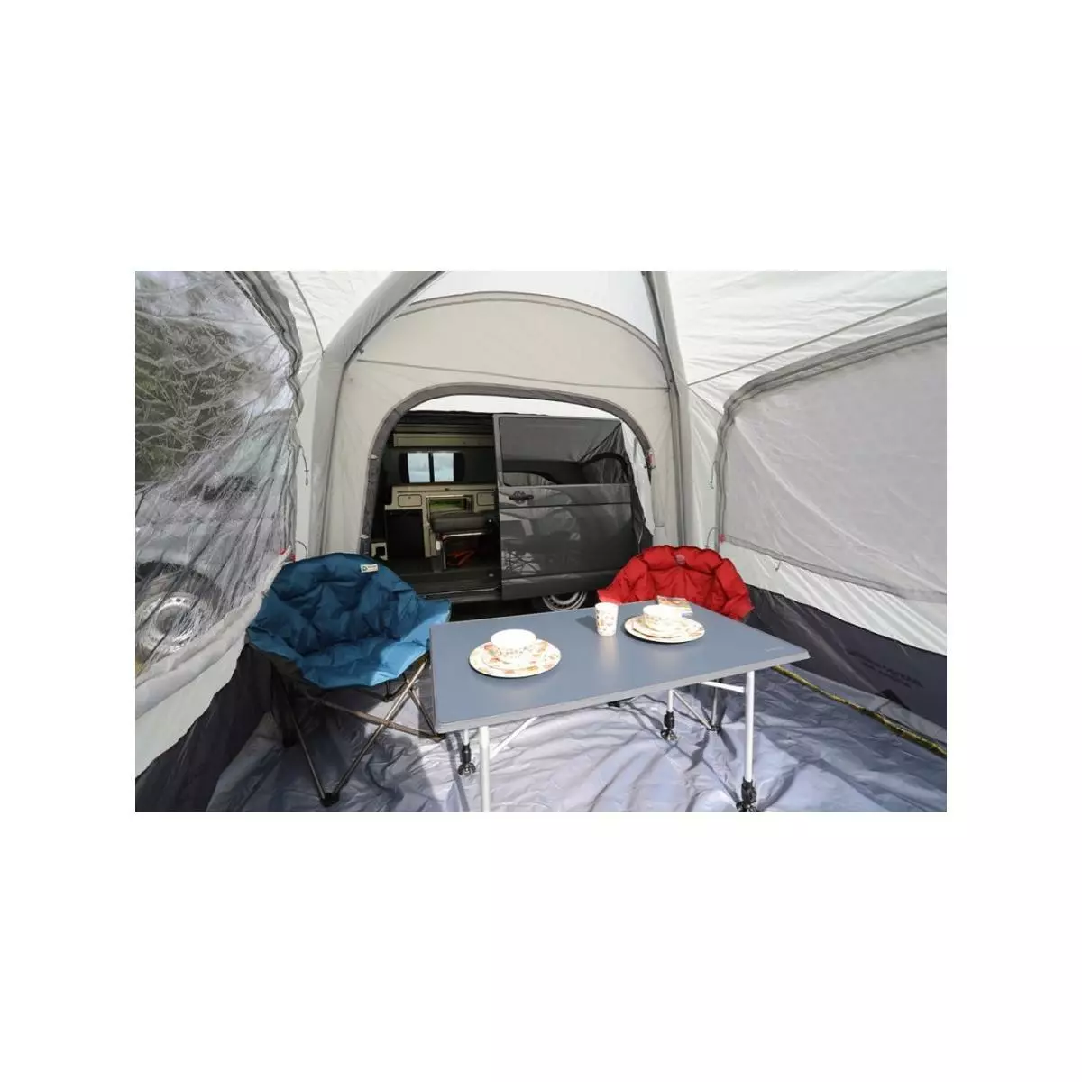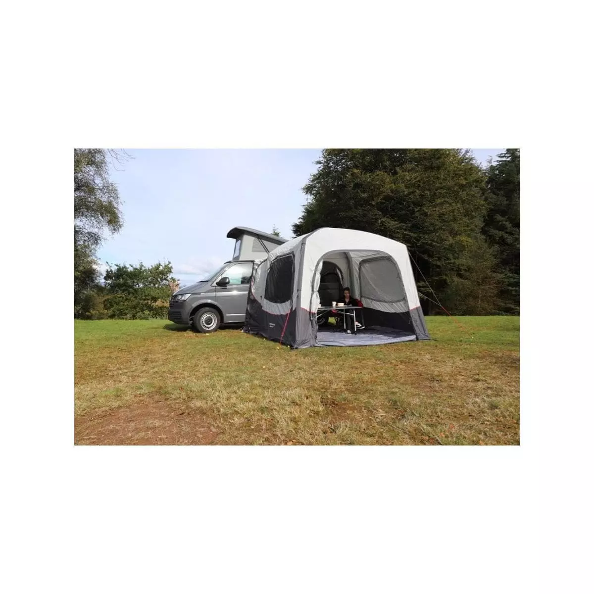 Der neue Pavillion Vango Agora Air VW kann direkt an der Seite ihres Wohnmobils angebracht werden. Er ist schnell und einfach aufzubauen und bietet viel Platz zum Relaxen und Entspannen.