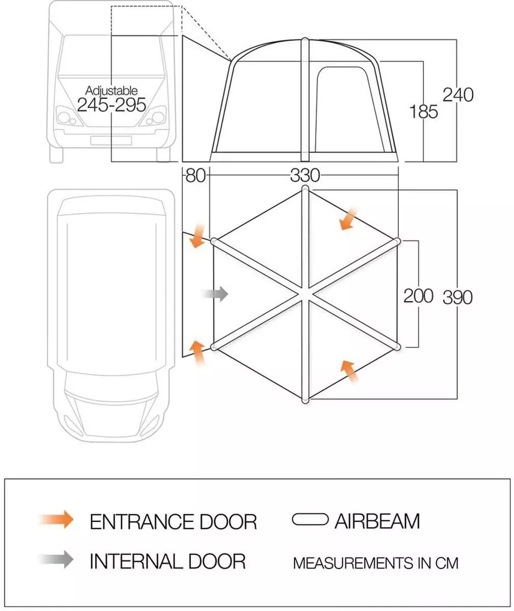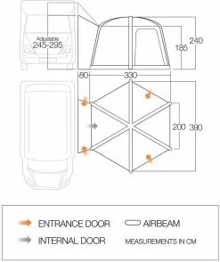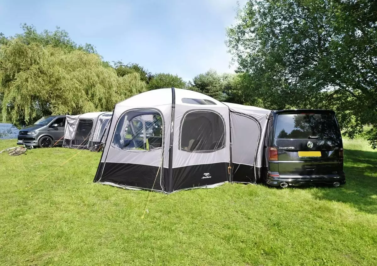 - Freistehendes Vango AirBeam Vorzelt mit vorgeformtem LuftgestĂ€nge fĂŒr Vans, Busse und Kastenwagen mit Anschlusshöhe von 180cm – 210cm
