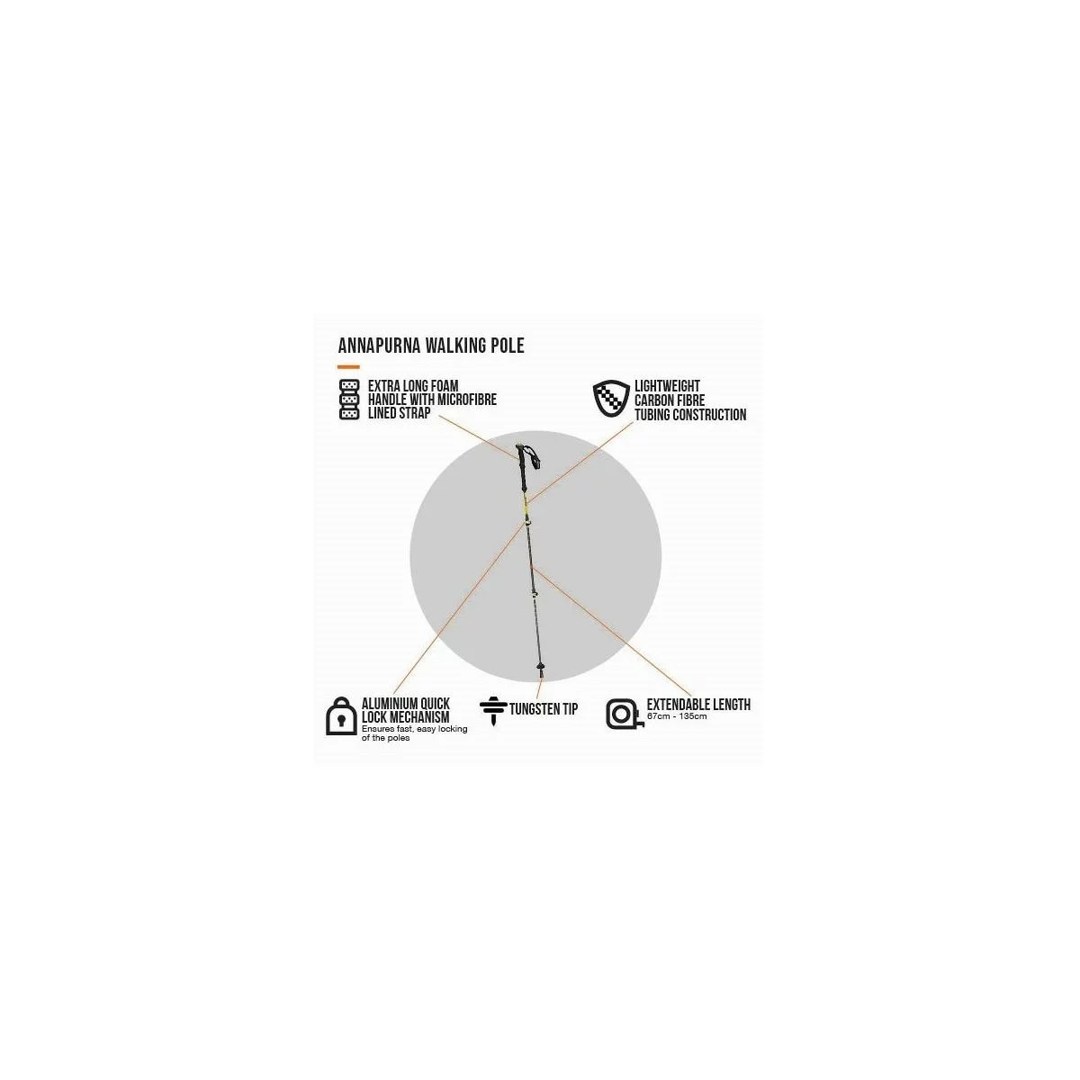 Der neue Vango Annapurna Wanderstock wurde aus superstarkem, leichtem Carbonfaser-Rohr für Ihre anspruchsvollsten Klettertouren entwickelt. Der extra lange Schaumstoffgriff ermöglicht mehrere Handpositionen und maximalen Komfort, während die QuickLock-Technologie eine schnelle und einfache Verriegelung der Stöcke gewährleistet.