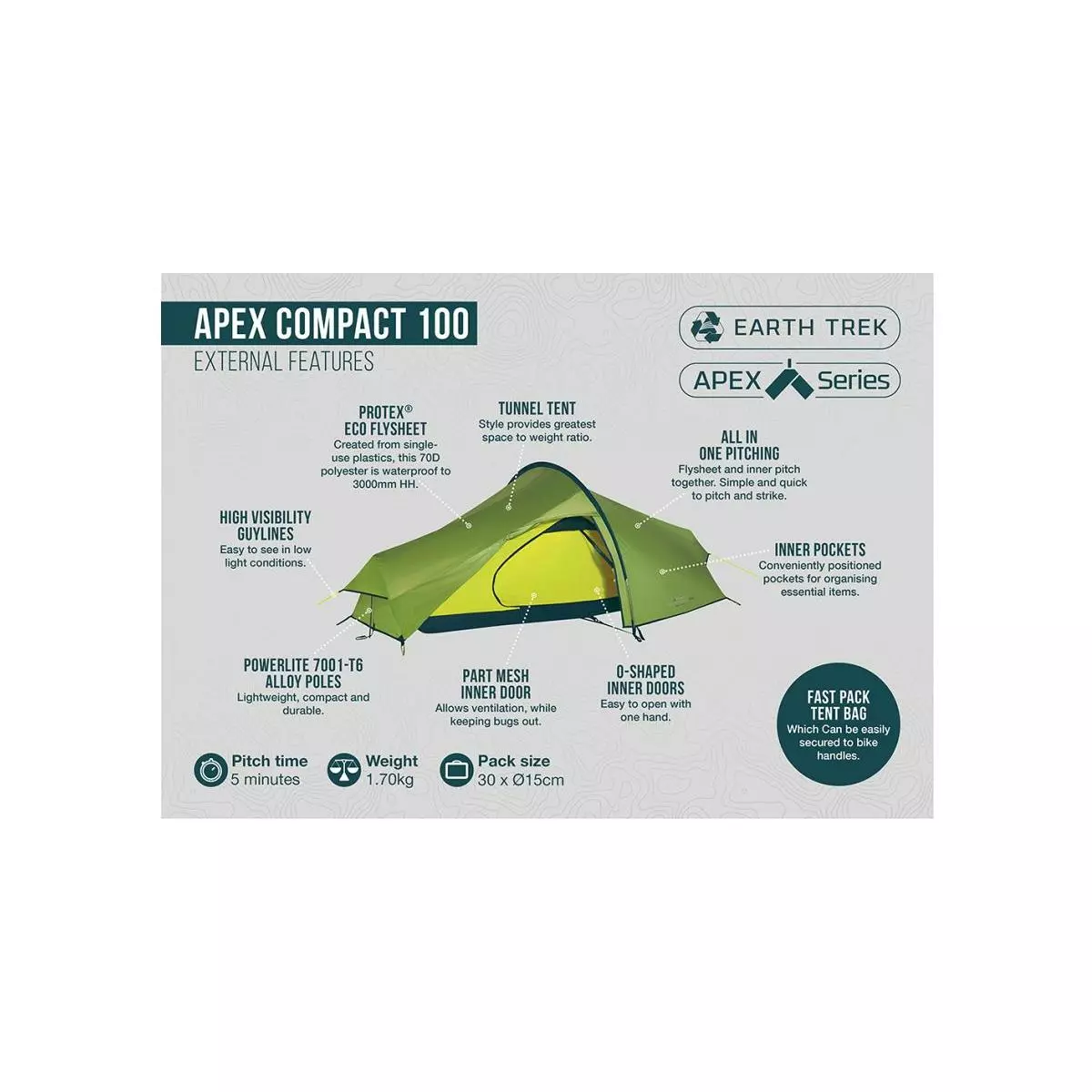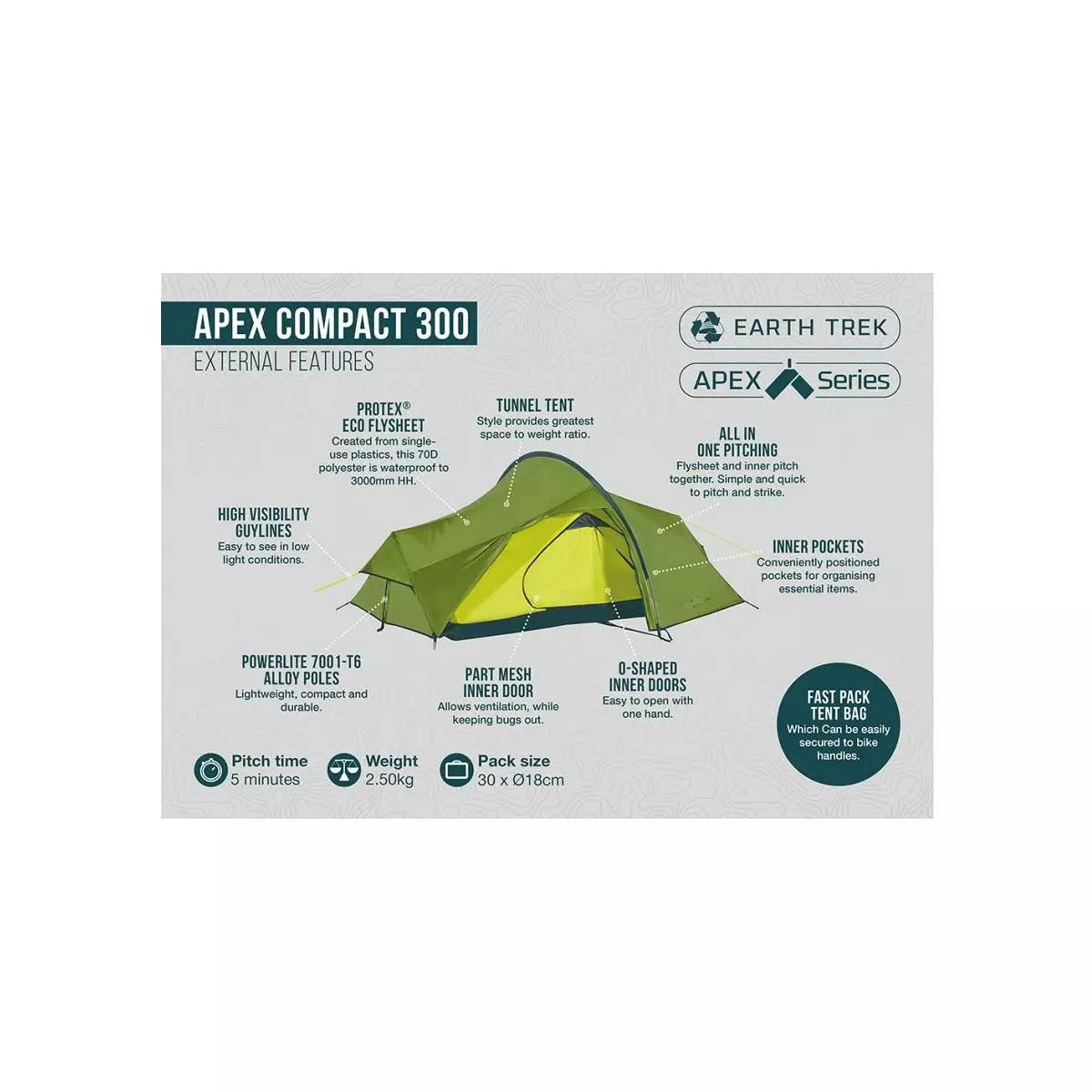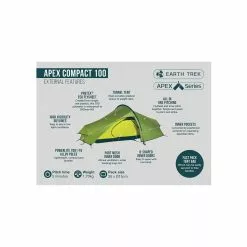 Wir stellen unsere aufregende, leichte und innovative Apex-Serie vor, die für Abenteurer entwickelt wurde, die ein kompaktes, hochwertiges und leichtes Zelt benötigen. Der Apex nutzt den zur Verfügung stehenden Platz hervorragend aus und verfügt über eine Reihe weiterer Merkmale, wie z.B. starke PoweLite Alloy Stangen, teilweise Mesh-Türen zur Belüftung im Sommer oder für den Einsatz im Ausland und O-förmige Türen, die sich leicht mit einer Hand öffnen lassen und auch die Aussicht einrahmen.