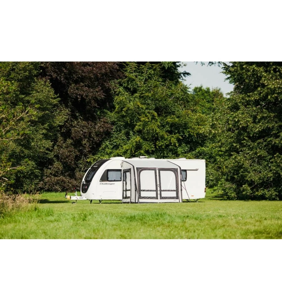 Das aufblasbare Vango Balletto Air 260 Elements Shield Wohnwagen-Vorzelt kombiniert traditionelles Design mit neuester Technik. Die neue, revolutionäre AirBeam® S.I Pro – Single Point Inflation hat nur noch ein Ventil, an dem du das Zelt mit der mitgelieferten Doppel-Hub-Pumpe aufblasen musst. Damit geht der Aufbau noch schneller und dein Zelt steht in ca. 15 Minuten. Zum EntlĂĽften gibt es mehrere Ventile, was auch das EntlĂĽften und das Einpacken des Zeltes schneller von statten gehen lässt. Das extrem robuste, langlebige und witterungsbeständige 150D Elements Shield-Gewebe ist ideal fĂĽr Reisemobilisten und verfĂĽgt ĂĽber den zusätzlichen Vorteil der ColourLok™-Technologie, die die Farbbeständigkeit unterstĂĽtzt.