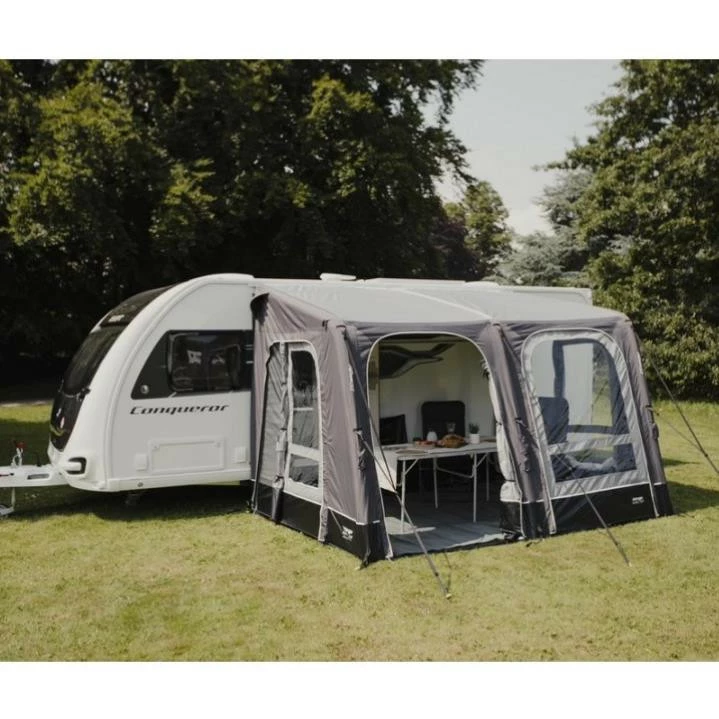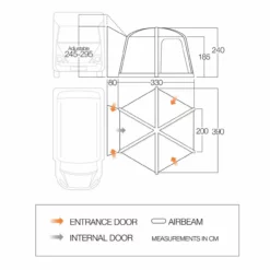 Das aufblasbare Vango Balletto Air 330 Elements ProShield Wohnwagen-Vorzelt kombiniert traditionelles Design mit neuester Technik. Die neue, revolutionäre AirBeam® S.I Pro – Single Point Inflation hat nur noch ein Ventil, an dem du das Zelt mit der mitgelieferten Doppel-Hub-Pumpe aufblasen musst. Damit geht der Aufbau noch schneller und dein Zelt steht in ca. 15 Minuten. Zum EntlĂĽften gibt es mehrere Ventile, was auch das EntlĂĽften und das Einpacken des Zeltes schneller von statten gehen lässt. Das extrem robuste, langlebige und witterungsbeständige 300D Elements ProShield-Gewebe ist ideal fĂĽr Reisemobilisten und verfĂĽgt ĂĽber den zusätzlichen Vorteil der ColourLok™-Technologie, die die Farbbeständigkeit unterstĂĽtzt.