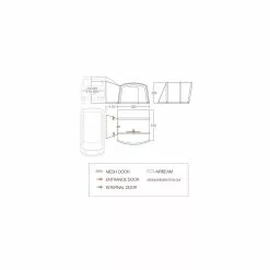 - Ăśberdachter Eingang – bietet einen geschĂĽtzten Eingang zu dem Zelt, was das Eindringen von Regen in den Wohnbereich verhindert