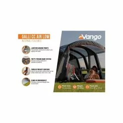 Das Vango Galli Air Low Vorzelt ist ideal für alle, die einen großen und vielseitigen Platz für ihren Urlaub im Freien suchen und ist ideal für Familienurlaube. Das vormontierte Vordach macht auch für einen großen Raum zum Entspannen im Freien, egal was das Wetter. Das aus Vango Sentinel Active-Gewebe gefertigte Zelt ist extrem leicht und ideal, wenn Platzersparnis wichtig ist. Die AirBeam-Struktur ermöglicht ein schnelles und einfaches Aufstellen mit einer starken und zuverlässigen Struktur. Das patentierte Tension Band System von Vango sorgt für zusätzliche Stabilität bei windigen Bedingungen. Mehrere Befestigungsmöglichkeiten für Fahrzeuge erleichtern den Aufbau, während der wegrollbare Tunnel es ermöglicht, das Galli freistehend zu lassen. Diese Markise ist für den Reisegebrauch konzipiert; sie ist nicht für den stationären oder langfristigen saisonalen Einsatz geeignet, da eine starke UV-Bestrahlung zu einem beschleunigten Abbau des Gewebes führt.