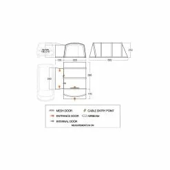 - ĂĽberdachter Eingang – bietet einen geschĂĽtzten Eingang zu demZelt und verhindert, dass Regen in den Wohnbereich eindringt