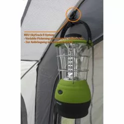 - Multi-flexible Aufhängepunkte (SkyHooks) für Lampen und Kabel im Wohnraum des Zeltes für eine optimale Positionierung der Beleuchtung