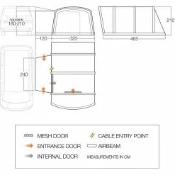 - Freistehendes Vango AirBeam® ® Vorzelt mit vorgeformtem Luftgestänge fĂĽr Vans, Busse und Kastenwagen mit Anschlusshöhe von 180cm – 210cm