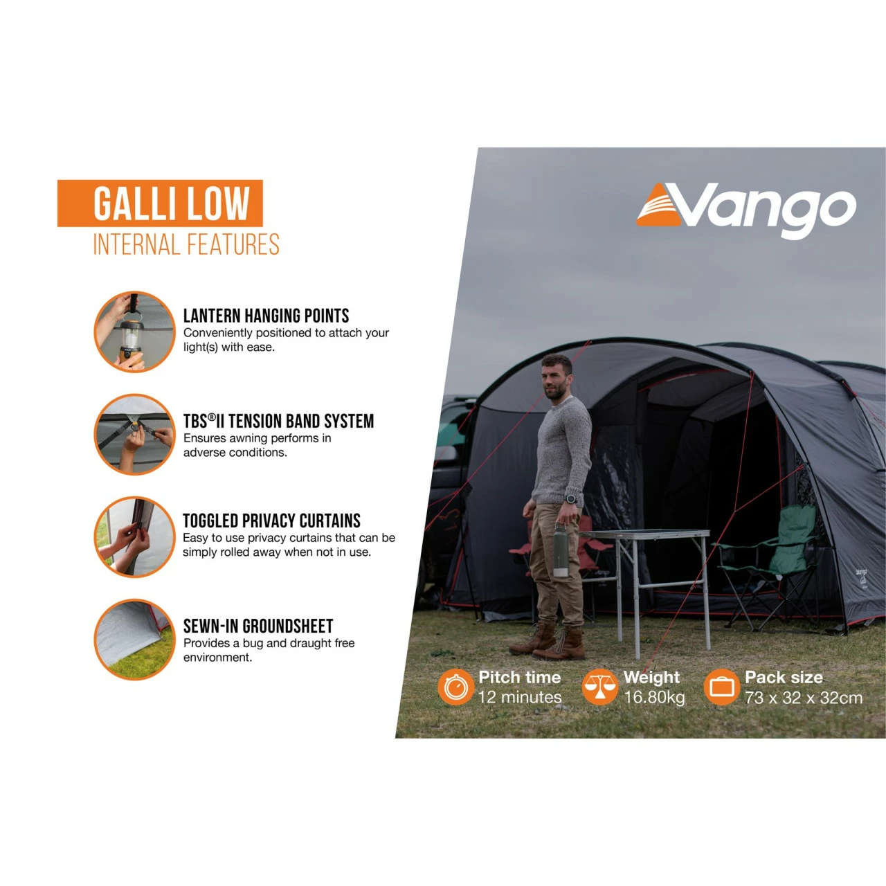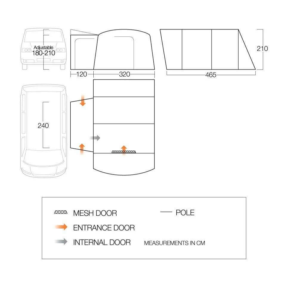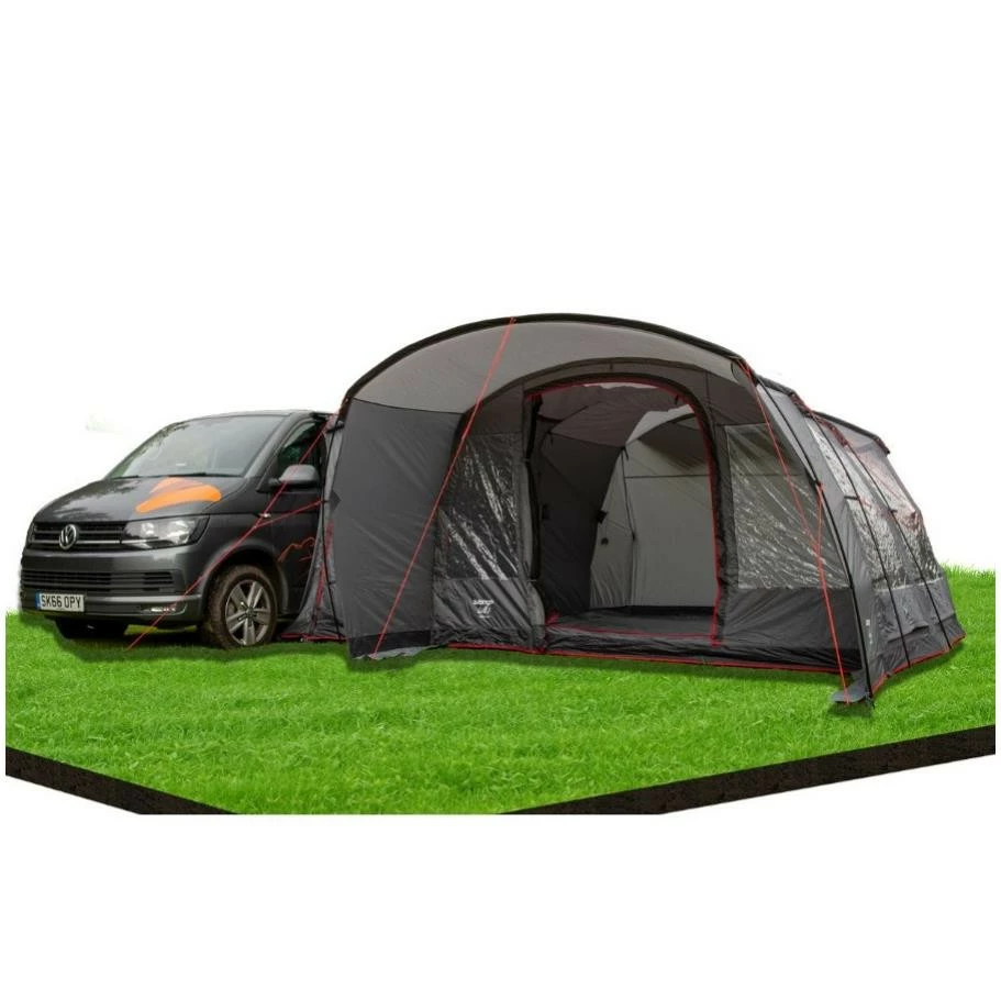 Das Vango Galli Low ist ein “Drive Away” Busvorzelt. Das bedeutet, du kannst das Zelt stehen lassen, wenn du mit deinem Bus einen Tagesausflug machst. DafĂĽr rollst du einfach die Verbindungsschleuse zurĂĽck. Das Vango Galli Low bietet mehrere Befestigungsmöglichkeiten an den Bus: es gibt eine vormontierte 6 mm Kederschiene, Gurte, Regenrinne und Reling. Es gibt 2 separate Eingänge zur Verbindungsschleuse. Der Hauptzugang zum Vango Galli Low ist durch ein groĂźes Vordach vor Wind und Wetter geschĂĽtzt. Die EingangstĂĽr ist komplett mit Moskitonetz versehen, so dass du sie zur optimalen BelĂĽftung offen lassen kannst. Die groĂźen “Diamond Clear PVC-Fenster” lassen sich durch Vorhänge verschlieĂźen, wenn du deine Privatsphäre haben möchtest. Mit dem leichten PowerFlex Fiberglas Stangen steht dein Busvorzelt stabil und ist trotzdem nicht zu schwer.