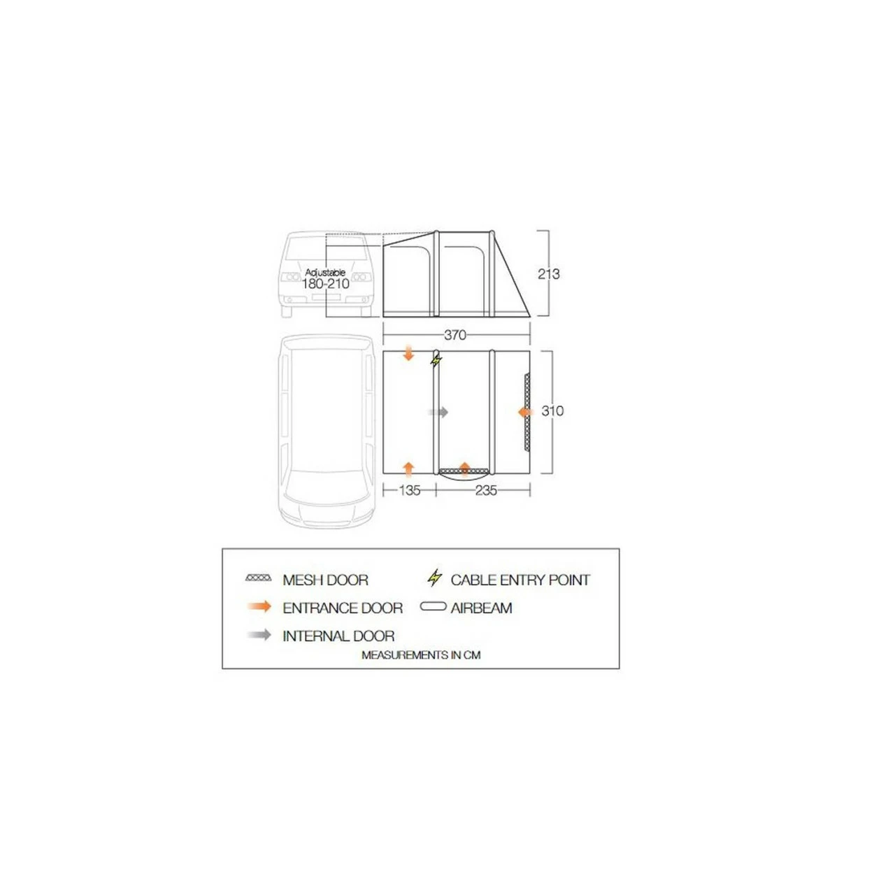 Das Kela Air TC Low Busvorzelt von Vango bietet dir und deiner Familie einen zusÀtzlichen Wohnraum, wenn ihr auf eurer Tour lÀnger an einem Ort steht. Die einzeln aufpumpbaren AirBeam LuftkanÀle machen den Aufbau zu einem Kinderspiel. Das Sentinel ECO TC-Gewebe ist ein Baumwoll-Mischgewebe, bei dem der Polyesteranteil aus recycelten Einwegkunststoffflaschen hergestellt wurde