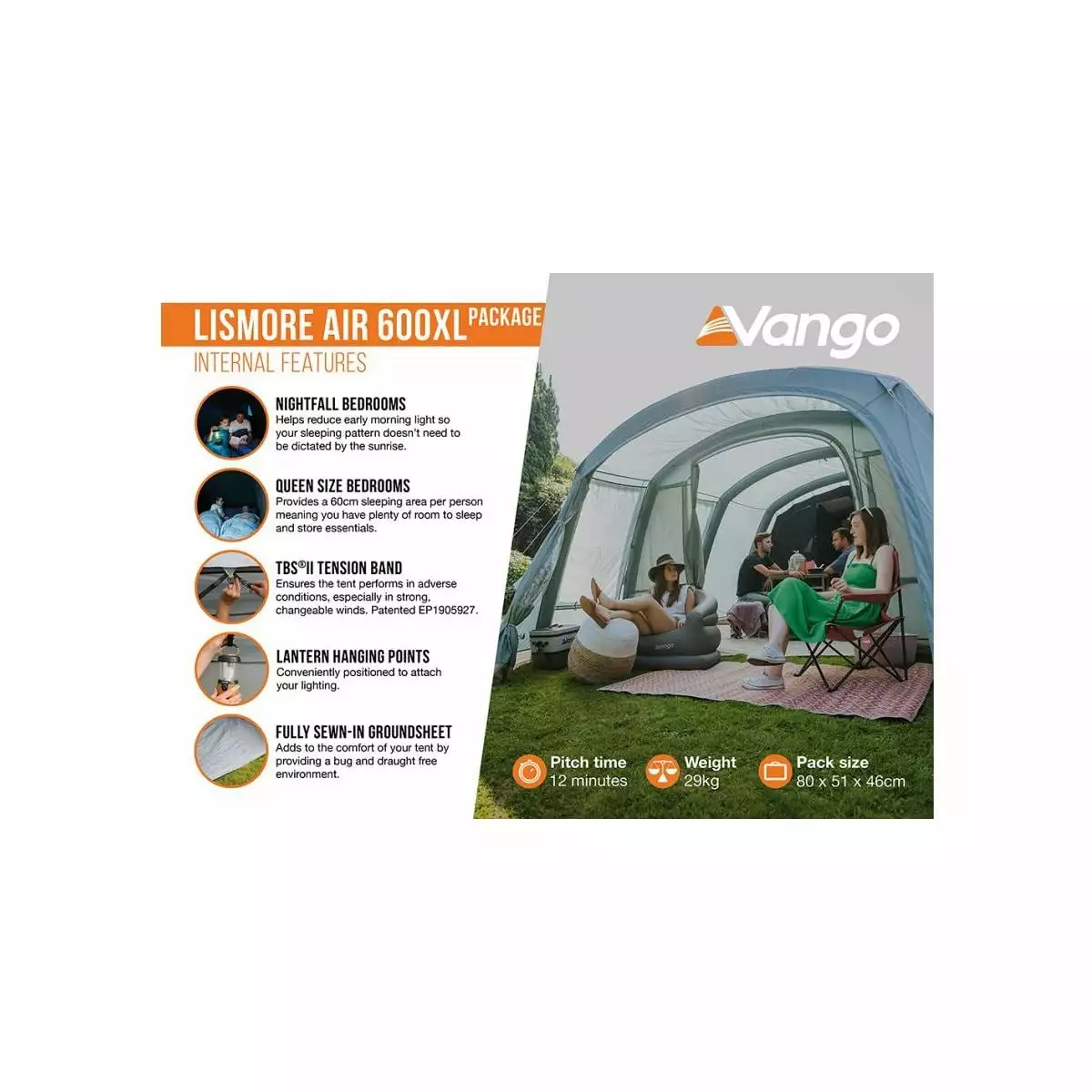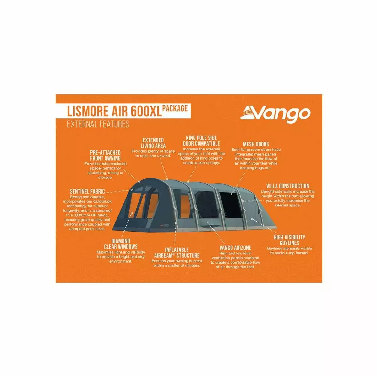 - 1x Vango Lismore Air XL Tunnelzelt
