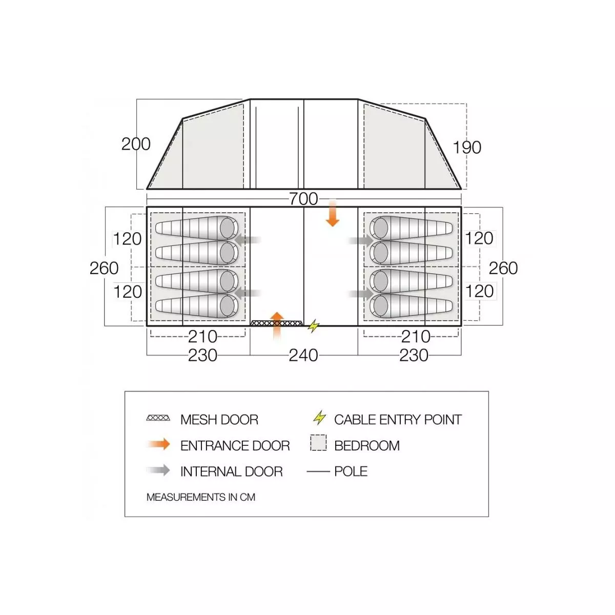 - King Pole Side Door Compatible – Increase the external space of your tent with the addition of king poles to create a sun-canopy
