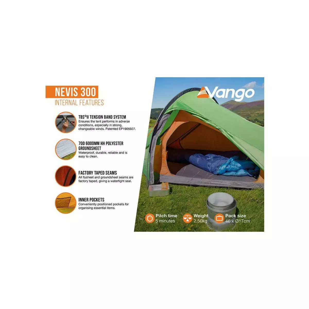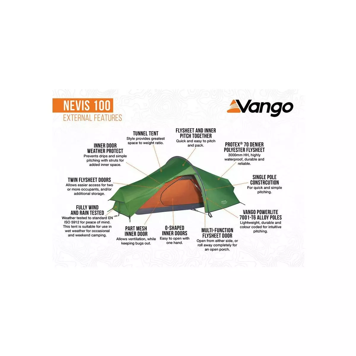 Das Nevis ist die ideale Wahl für jene, die nach einem Tunnelzelt mit Seiteneingang suchen und Gewicht und Packgröße auf ein Minimum reduzieren müssen. Das Nevis ist ausgestattet mit Vangos TBS®II System, das die Stabilität des Zelts in widrigen Verhältnissen erhöht. Ein großartiges Zelt für all jene, die gerade beginnen, die Welt da draußen zu erkunden.