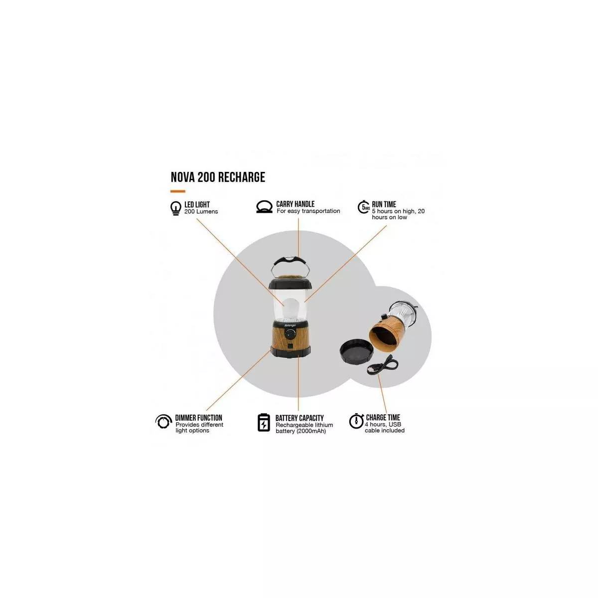 Die Holz-Effekt Vango Nova 200 Recharge USB-Laterne ist ein stilvolles und modernes Design. Es verfĂĽgt ĂĽber einen praktischen Tragegriff fĂĽr den einfachen Transport und die Verwendung und wird durch eine wiederaufladbare Lithium-Batterie, die bis zu 5 Stunden dauert angetrieben. Es profitiert auch von LED-Licht von 200 Lumen und Dimmer-Funktion fĂĽr verschiedene Beleuchtungsoptionen fĂĽr welche Stimmung Sie wollen oder fĂĽr welche Situation.