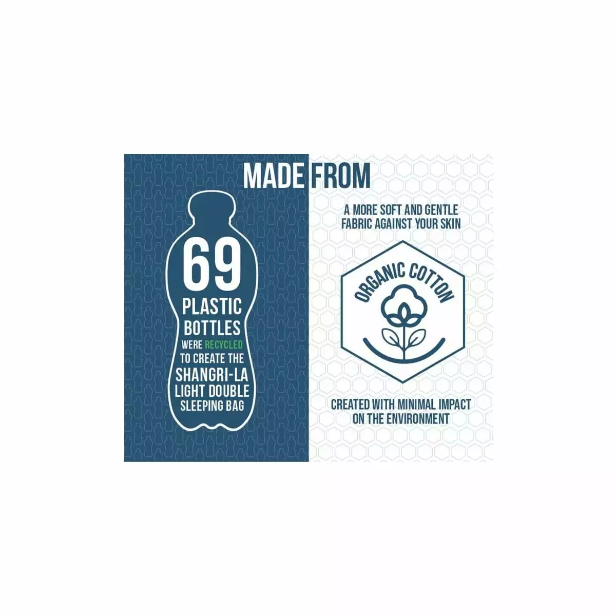 Die Vango Shangri-La Kollektion wurde um diese wunderschöne neue Reihe von Luxusschlafsäcken erweitert, die unsere preisgekrönten Shangri-La Matten für die ultimative Nachtruhe ergänzen. Als Teil unserer Earth Collection wurde der Schlafsack aus Bio-Baumwolle und 100% recyceltem Polyester hergestellt, was ihn zu einer nachhaltigeren Wahl macht. Dieser quadratisch geformte Einzelschlafsack mit integrierter Kopfstütze bietet den zusätzlichen Platz und Komfort, den Sie für den perfekten Schlaf benötigen. Die Bio-Baumwolle ist hypoallergen und fühlt sich weich auf der Haut an, ähnlich wie Ihr Bettzeug zu Hause, und da es sich um Baumwolle handelt, bleibt es in heißen Sommernächten kühl und bequem. Der Schlafsack ist bei 30 Grad in der Maschine waschbar und wird in einem Kompressionsbeutel geliefert, der ein kleines Packmaß und eine einfache Lagerung ermöglicht. Schlafen Sie wie ein König auf Ihren Camping- oder Wohnmobilreisen und verwenden Sie es im Alltag, wenn Sie Familie oder Freunde zu Besuch haben.