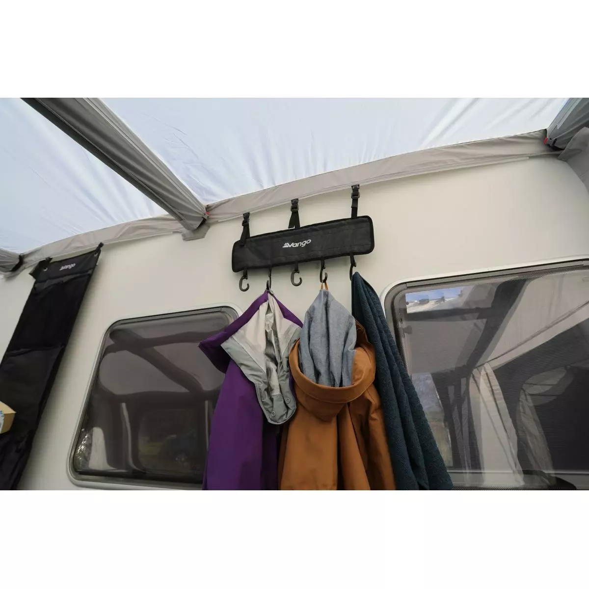 Der Sky Storage Accessory Hanger wurde entwickelt, um sich nahtlos in jedes Zelt oder Nebengebäude mit dem einzigartigen SkyTrack®-System von Vango zu integrieren. Dieser praktische Organizer bietet zusätzlichen hängenden Stauraum, der perfekt für Mäntel oder Handtücher geeignet ist und hilft, Ihr Nebengebäude oder Zelt organisiert zu halten. Der Sky Storage Zubehörträger wird mit 3 vormontierten Sky-Haken und einer Aufbewahrungstasche geliefert