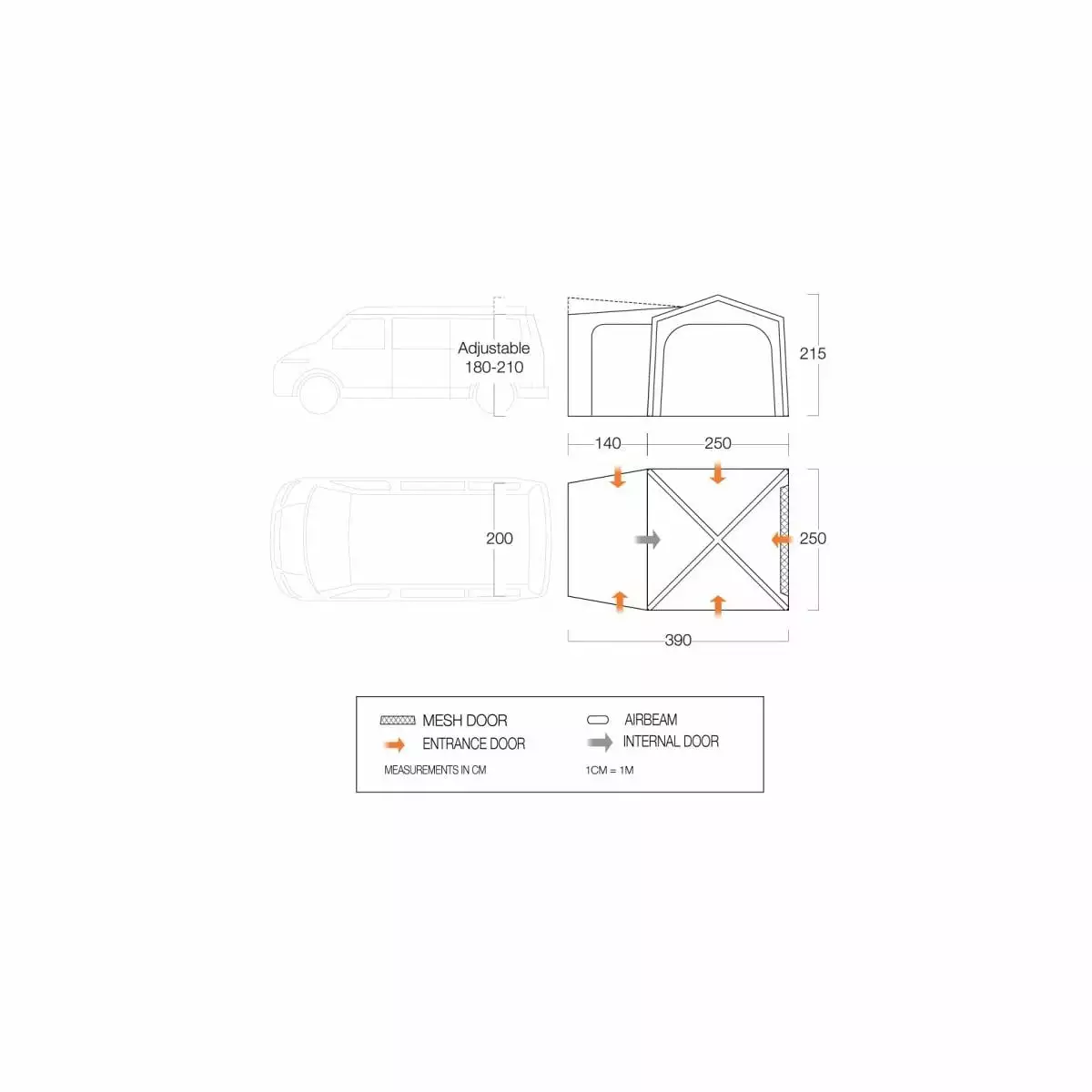 Neu für 2021 ist das Tailgate AirHub, Vangos erstes Heckanbau-Vorzelt, ideal für Paare oder unabhängige Reisende mit Abenteuerlust. Das Tailgate AirHub ist der perfekte Schnellaufsteller für kurze Zwischenstopps und wurde mit Blick auf aktive Abenteurer entwickelt. Ein AirBeam®- und AirSpeed®-Ventilsystem sorgt dafür, dass dieses Vorzelt in wenigen Minuten aufgebaut und ebenso schnell wieder entleert ist. Für die mühelose Befestigung sind lediglich Abspanngurte an der Fahrzeugfront und im Tunnelbereich erforderlich, so dass die Markise auch ohne Kadorschienen problemlos an Ihrem Fahrzeug befestigt werden kann. Sollten Sie diese dennoch verwenden wollen, sind die traditionellen Befestigungsmöglichkeiten mit Dachlaschen, Kador und einer Hülse für Gestänge und Klemme ebenfalls enthalten. Zwei Türen im Verbindungstunnel sorgen für einen praktischen Stauraum, während Vangos zuverlässiges und leichtes Sentinel Active Fabric für ein kompaktes Packmaß sorgt, das sich bei Nichtgebrauch leicht verstauen lässt. Der Tailgate AirHub benötigt keine geöffnete Heckklappe, um die Struktur zu stützen, so dass Sie den Verbindungstunnel einfach wegrollen können, wenn Sie losfahren und den Tag erkunden wollen. Mit dem Tailgate AirHub sind Sie für jedes Abenteuer gerüstet.