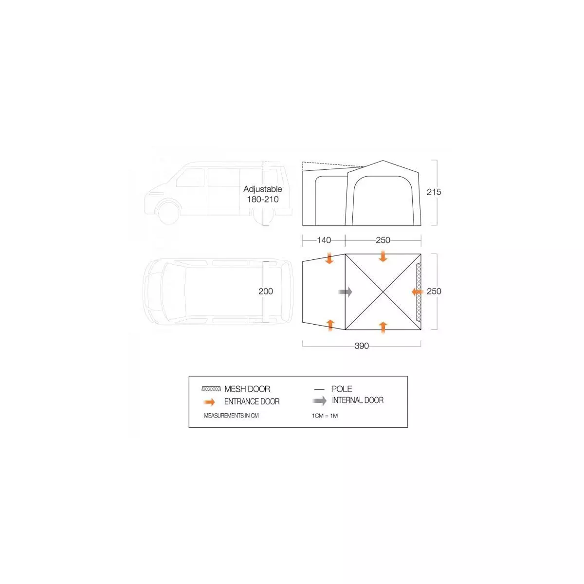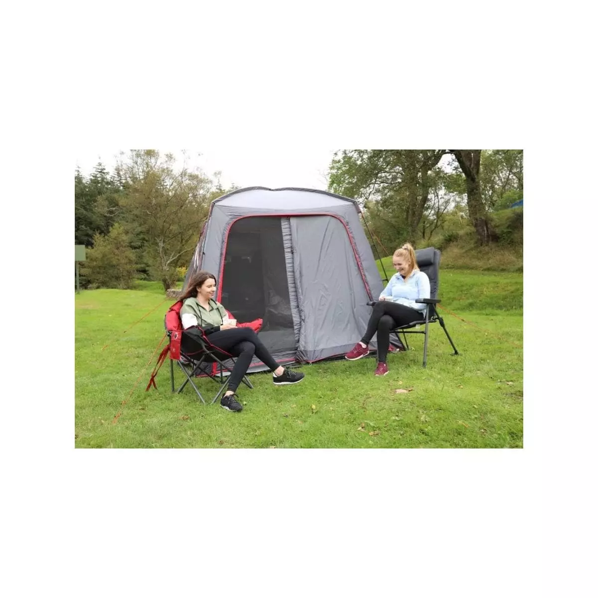 - Aufrollbarer Verbindungstunnel – Wenn Sie Ihr Vorzelt abnehmen möchten, rollen Sie den Tunnel einfach zurĂĽck und schlieĂźen ihn mit einem Kippschalter