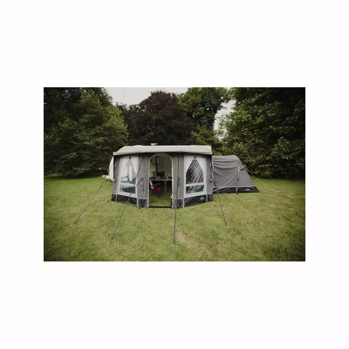 Erweitern Sie Ihr Wohnwagenvorzelt mit dem Elements ProShield Tall-Anbau, der einfach durch Entfernen der Seitentür des Vorzelts und Anbringen des Anbaus mit einem Reißverschluss befestigt wird. Perfekt als zusätzlicher Stauraum oder für weitere Gäste, die zu Besuch kommen. Premium Midnight Bedrooms sorgen für eine bessere Nachtruhe, die nicht von der aufgehenden Sonne unterbrochen wird. Eine einzelne AirBeam®-Struktur und das passende Elements ProShield-Gewebe sorgen für einen einfachen Aufbau und ein luxuriöses Gefühl.