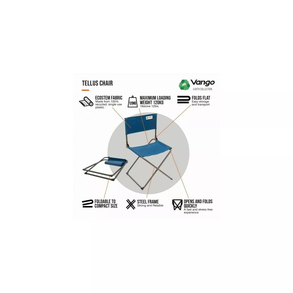 Der Vango Tellus Stuhl ist aus der neuen Earth Collection und wird aus unserem EcoStem-Recycling-Gewebe mit stilvollem Prägedesign hergestellt, das zu 100 % aus recycelten Plastikflaschen besteht. Der recycelte Stoff ist widerstandsfähig, während er sich weich anfühlt, und das faltbare Design sorgt für einfache Lagerung und Transport. Er verfügt über einen reichen Bronze-Rahmen und ist extrem leicht und bequem, der perfekte Hocker für Angelausflüge, das Sitzen am Lagerfeuer oder die Mitnahme zu Festivals.