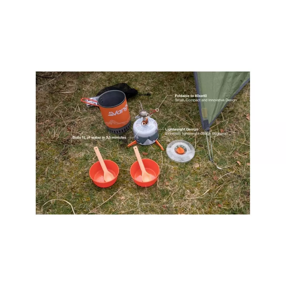 Das neue Ultralight Kochsystem ist aufgrund seiner verbesserten thermischen Effizienz extrem stark und bietet eine schnelle Kochzeit. Es besteht aus einem Deckel, einem Dosenständer, 2 Schalen und 2 Stück Besteck, die alle in das neue kleine Set passen.